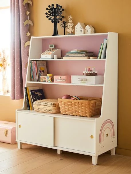 Une belle et grande Ă©tagère-bibliothèque pour ranger les livres ou exposer de jolis objets ! Pratique : elle dispose d’un compartiment fermĂ© avec porte coulissante pour y cacher ses petits trĂ©sors !