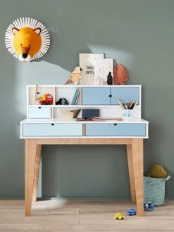 A l’heure de faire les devoirs, le bureau enfant Oslo donne une belle leçon de style ! Il conjugue l’esprit chaleureux du bois avec le blanc et le bleu glacier pour un design scandinave pile dans la tendance ! Très pratique avec ses nombreux tiroirs et niches, le bureau Oslo est Ă coup sĂ»r le bureau qu’il lui faut !