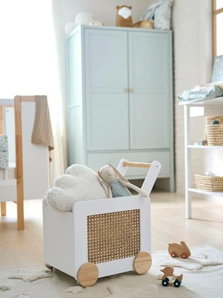 Le rangement comme sur des roulettes ! Un beau coffre Ă jouets dans l’air du temps avec ses cĂ´tĂ©s en cannage, que votre enfant pourra dĂ©placer de pièce en pièce.Â
