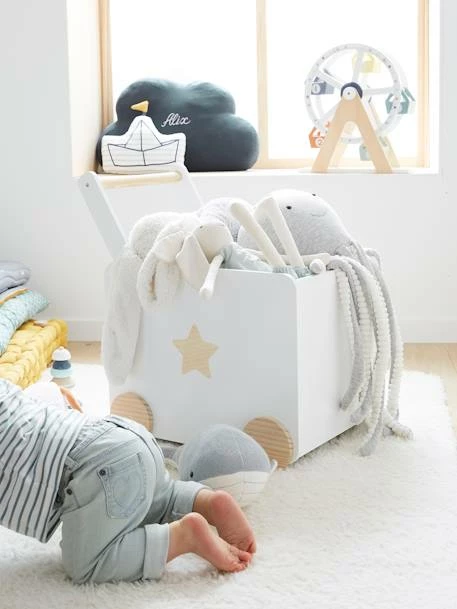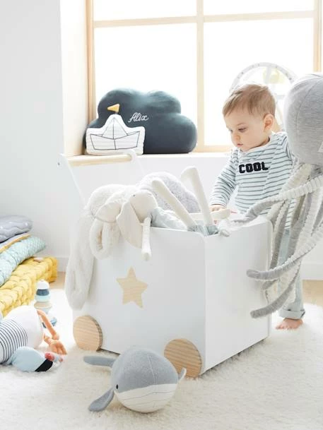 Un joli coffre Ă jouets que les enfants pourront dĂ©placer selon leurs envies grâce Ă ses jolies roulettes en pin !Â