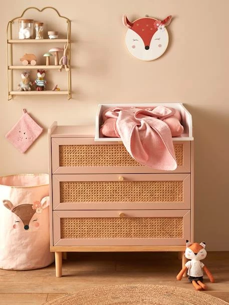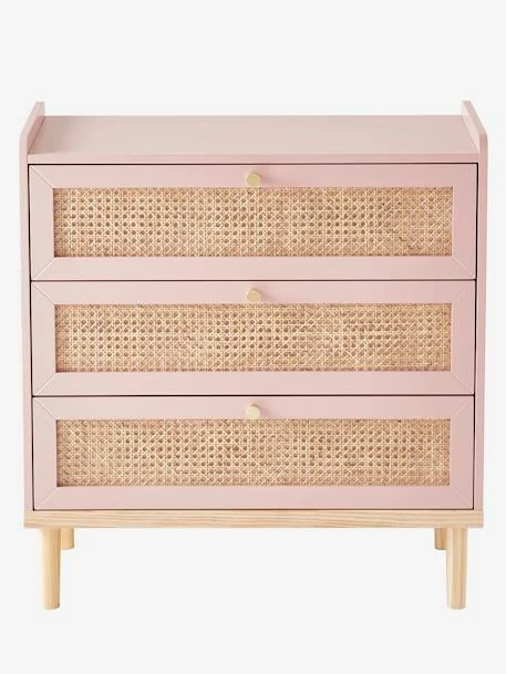 Une belle commode qui allie la douceur du vieux rose au charme rĂ©tro du cannage pour donner Ă la chambre un style très tendance. La commode PoĂ©sie se compose de 3 tiroirs pratiques pour ranger les vĂŞtements des enfants. Les boutons Ă la finition dorĂ©es amènent la touche finale sur cette irrĂ©sistible commode. Â