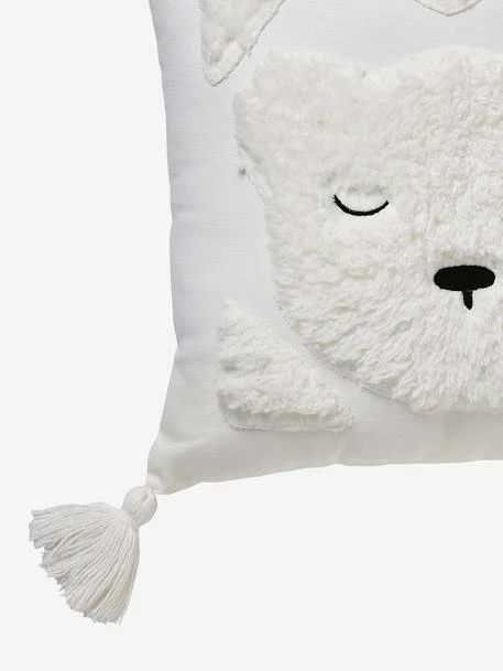 Coussin avec applications sherpa Ours berbère 50% coton, 50% polyester. Garnissage polyester.