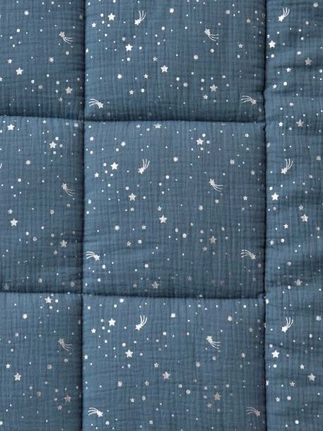 Une couverture (ou tapis de sol) en gaze de coton bio* délicate, qui accompagne votre enfant partout et le couvre de douceur. Décorée d’étoiles en mylar, elle amène de la féérie au quotidien des bébés et de leurs parents !