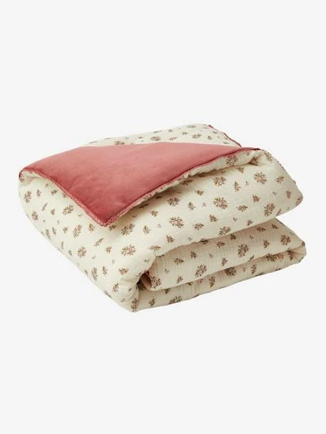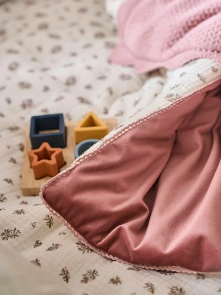 Couverture gaze pur coton et velours polyester, garnissage polyester.