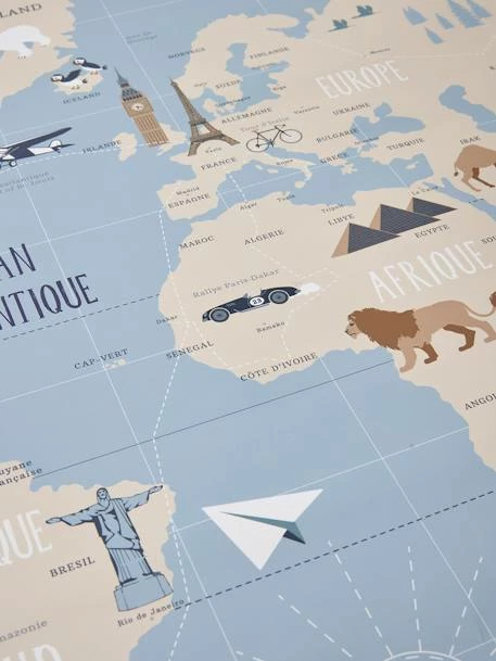 Une mappemonde qui décore joliment le mur de la chambre tout en permettant à votre enfant de se familiariser avec la Terre, ses océans et ses 5 continents. Cette Carte du monde est une façon ludique et originale pour les enfants de découvrir le monde !