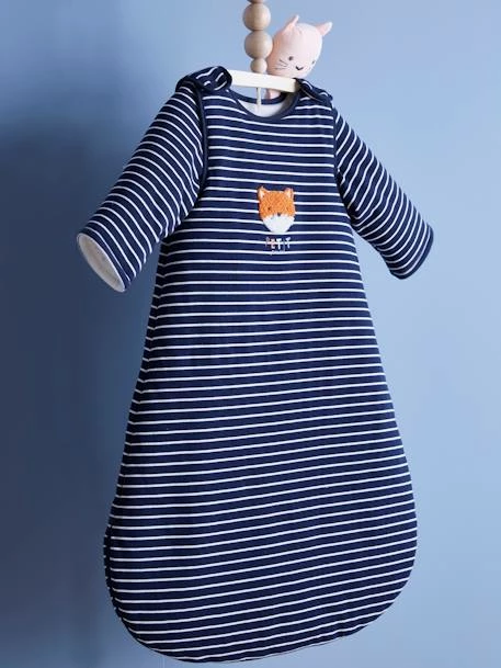 Pour offrir de douces nuits à bébé, cette gigoteuse manches amovibles est en première ligne ! Une rayure marine et un joli petit renard se partagent la vedette sur une gigoteuse bien chaude, idéale quand la météo est fraîche.