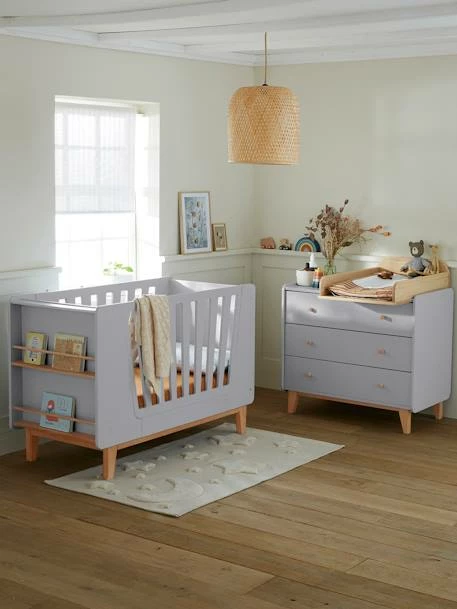 Lit bébé transformable LIGNE FJORD en panneaux de fibres de bois, sommier et pieds en pin massif.