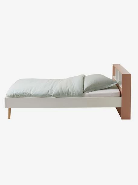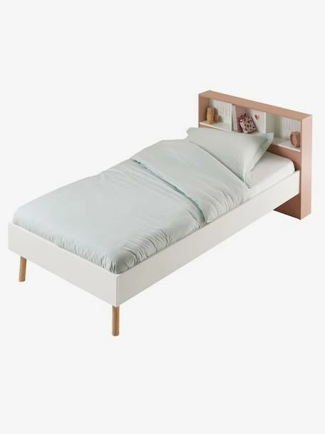 Lit enfant avec rangements LĂ©a en panneaux de fibres de bois et pieds en hĂ©vĂ©a. Peinture finition Ă l’eau.