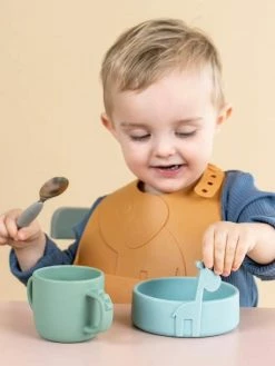 Lot de 2 bavoirs avec récupérateur DONE BY DEER Peekaboo Elphee en silicone