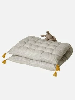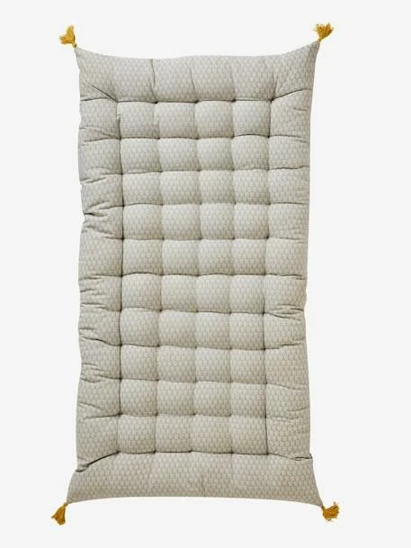 Très tendance, ce chouette matelas de sol permettra aux enfants de se créer un petit coin de jeu ou de lecture à même le sol. Graphique et ethnique avec ses quatre pompons moutarde, il apportera du style à la déco en plus de ravir les enfants !