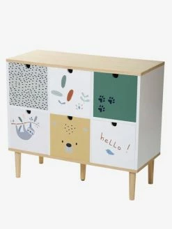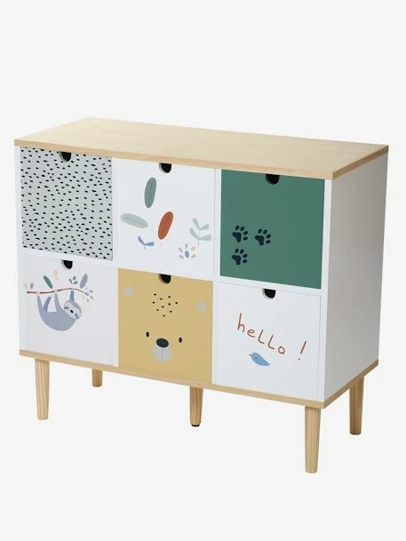 Un meuble colorĂ© et animĂ© qui raconte de belles histoires d’aventures dans la jungle ! Pratiques, ses 6 bacs vous permettent de trier les habits ou les jouets de vos enfants. Les pieds et le plateau en pin massif amènent une jolie touche contrastĂ©e pour une dĂ©co Ă la fois fun et tendance ! Â