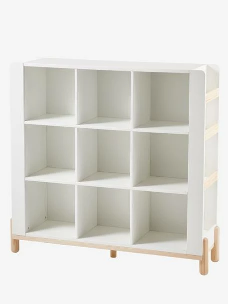 Meuble 9 cases en panneaux de fibres de bois, pieds en bois.