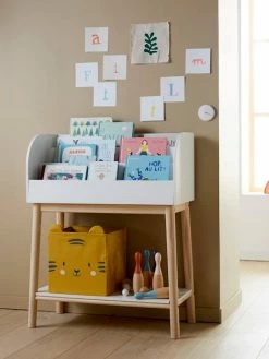 Pour des livres bien rangés que l’on peut attraper sans se baisser ! Placé à bonne hauteur pour l’enfant, ce rangement fonctionnel est aussi très décoratif dans la chambre pour y poser de jolis casiers pour les jouets et y exposer ses albums préférés.