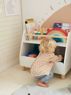 Fonctionnel et bien pensé, le meuble mixte PTILOU permet à l’enfant d’accéder facilement à ses jouets, peluches et jouets, exposés sur le dessus ou rangés dans les bacs.