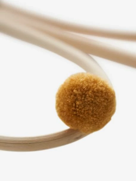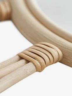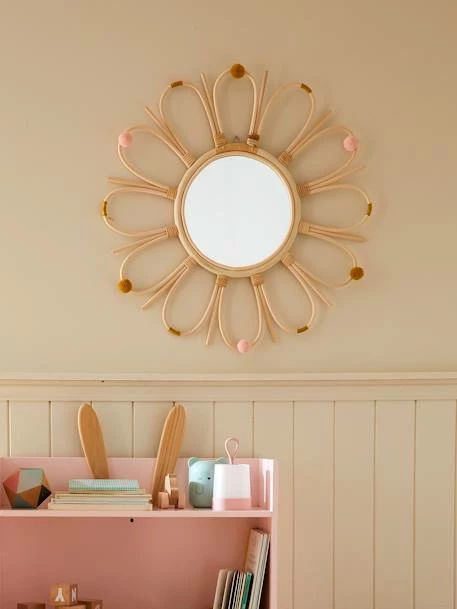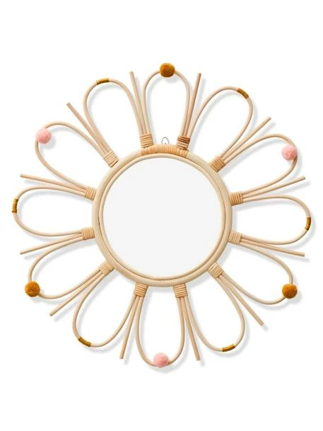 Miroir Ă pompons en rotin.