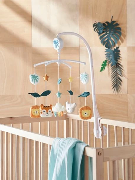 Un joli mobile musical oĂč les animaux de la jungle se sont donnĂ©s rendez-vous pour apaiser bĂ©bĂ© dans son berceau ou son lit Ă barreaux. En observant la ronde du tigre, du lion et du koala, votre petit bout de chou s’Ă©merveillera puis s’endormira au son d’une douce musique. LivrĂ© dans une jolie boĂźte, ce mobile musical fait une trĂšs belle idĂ©e cadeau !