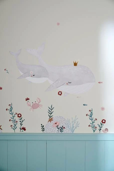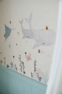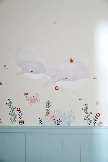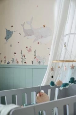 La Planche de Stickers Under the Sea met en scène un magnifique ballet de baleines, raies-manta et méduses entourées de délicates fleurs. Ces stickers vous permettent de créer une atmosphère douce et réconfortante dans la chambre de votre enfant.