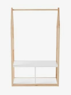 Un beau portant en forme de cabane, pour exposer les plus jolis habits de votre enfant. Il dispose de 2 étagères en bas, pratiques pour y placer les chaussures ou autres accessoires.