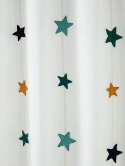 Ce rideau en toile bâchette de qualité habille joliment la fenêtre et offre au regard de belles guirlandes d’étoiles.