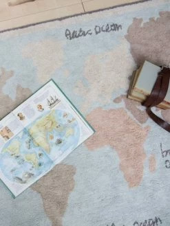 Un grand tapis Mappemonde qui invite au voyage sans sortir de chez soi ! Les enfants apprĂ©cieront de jouer Ă mĂŞme le sol entre l’Asie et l’AmĂ©rique. Un tapis ludique pour faire fonctionner l’imagination des enfants et leur faire dĂ©couvrir le Monde. Ce tapis Mappemonde est rĂ©alisĂ© Ă la main par des artisans et confectionnĂ© en coton bio responsable avec des teintures non toxiques. Pour entretenir votre tapis, il vous suffit de le passer en machine Ă 30°. Â