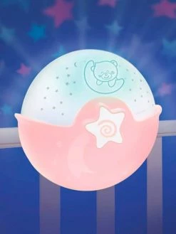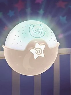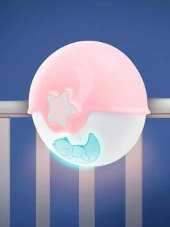 – A partir de 12 mois : lampe de chevet avec projection - Se fixe sur le montant du lit Ă barreaux par attaches fournies